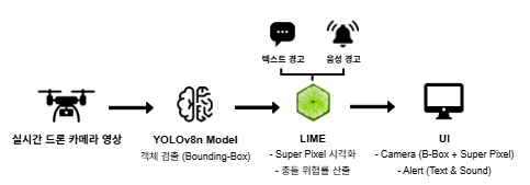이를 통해 해당 시스템은 검출된 객체가 '충돌'로 예측될 시, 검출된 bbox 영역에 한해 LIME을 적용하게 된다.
